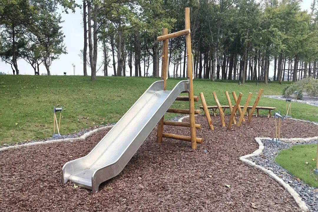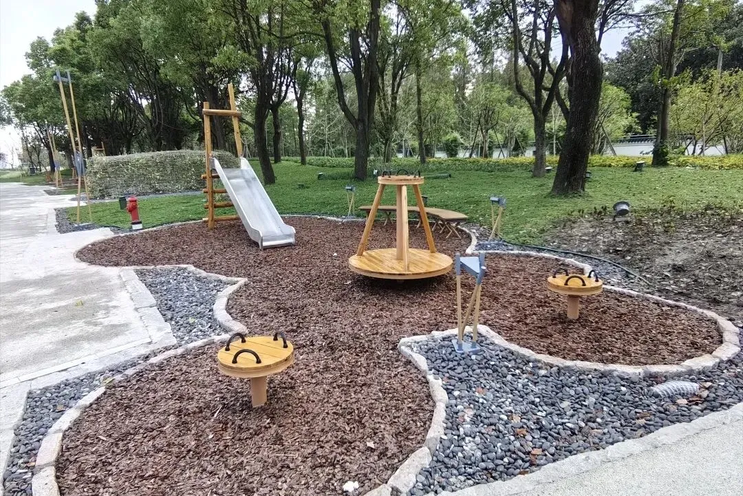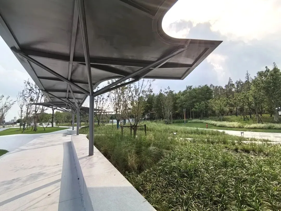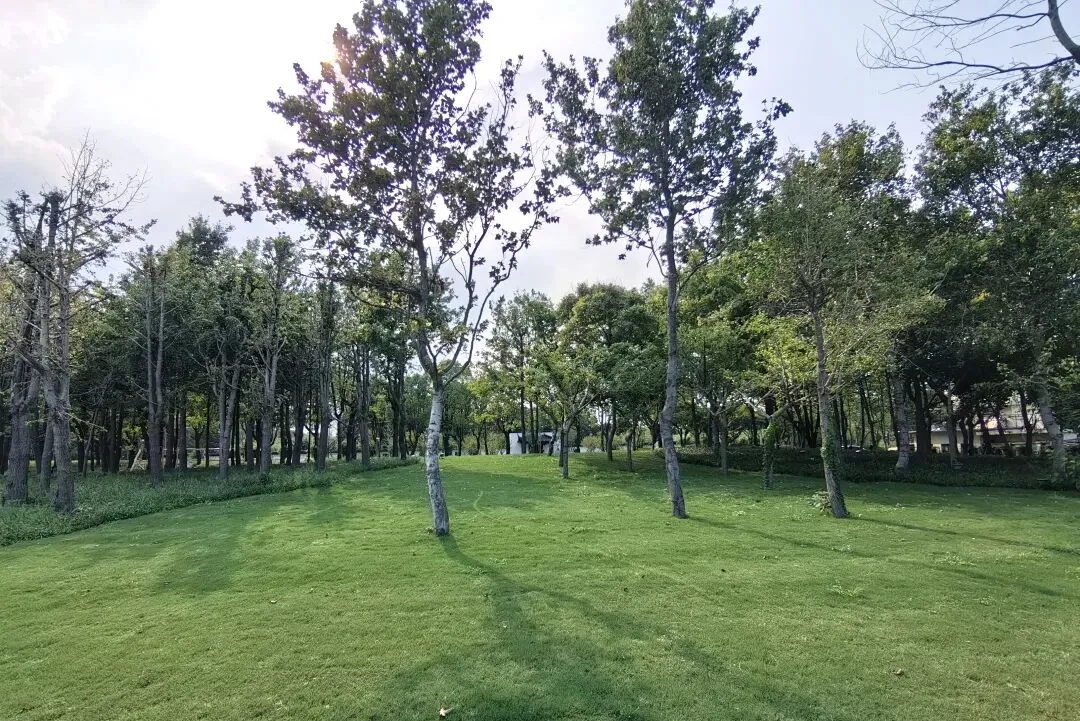 共青森林公园南园沿江贯通段,北至嫩江路及轮渡站,南抵海军机械厂,西接万竹园与嫩江河泵站,东望黄浦江的粼粼波光,与北园的“森林秘境”隔路相望。划分为湿地迷踪、树影草地、绿滩长亭、林间石阵四个区域,每一处都将绿意、江景与亲子间的欢声笑语融化成温柔注脚。